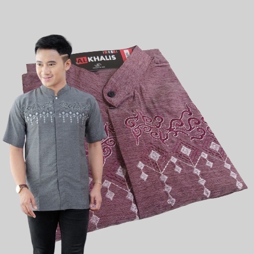 BAJU KOKO BORDIR LENGAN PENDEK TERMURAH BUSANA MUSLIM PRIA ALKHALIS