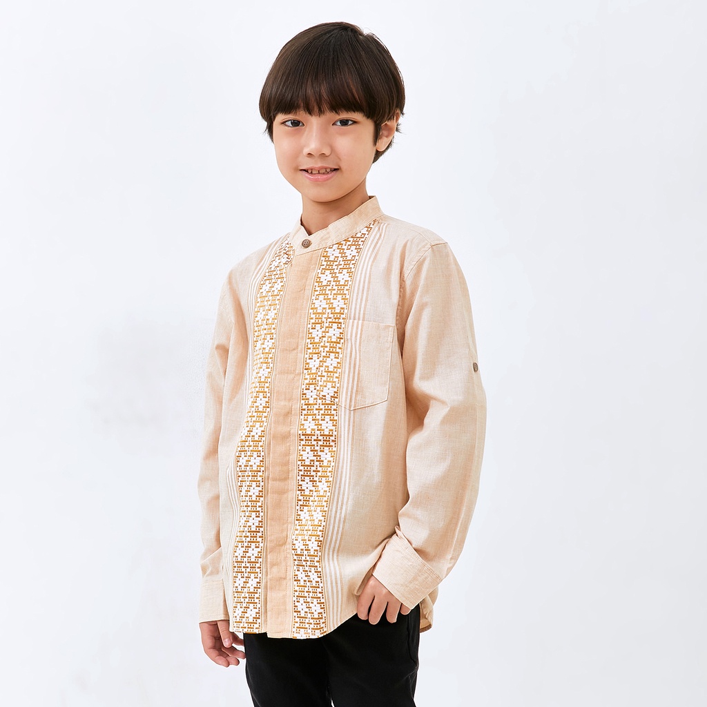 M231 Kemeja Anak Laki Laki Koko Panjang Coklat 2770