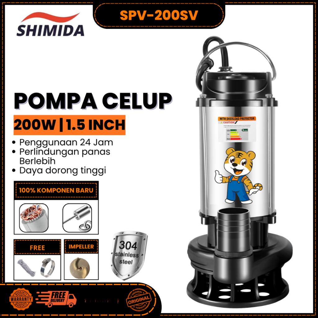 SHIMIDA Pompa Celup Air Bersih Kotor SPV-200SV 1.5inch Stainless Pompa Air Submersible Sewage Pump