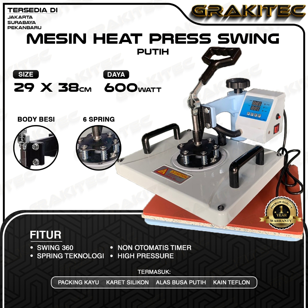 Mesin Press Sablon Kaos Swing 29x38 600 Watt Multifungsi Combo All in One 3in1, 5in1, 9in1 Sliding - Kaos, Mug, Topi, d