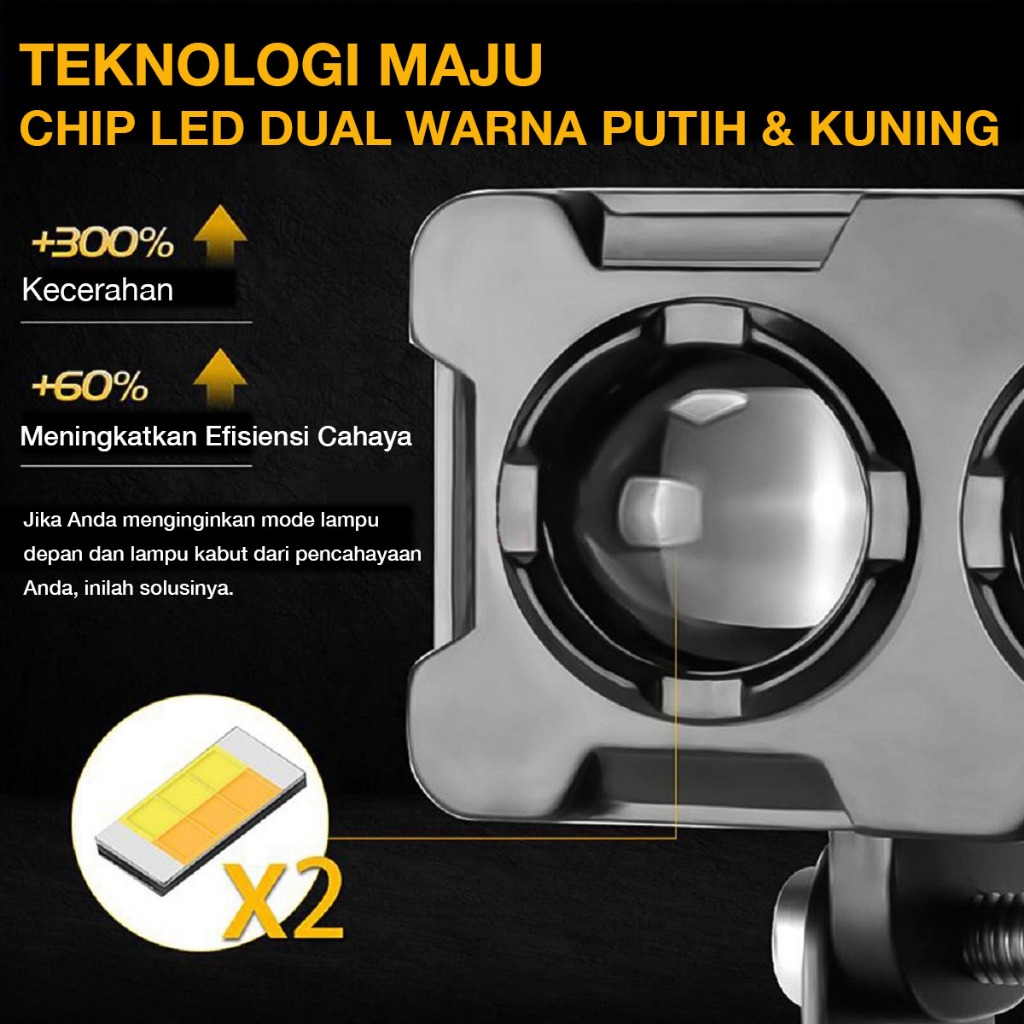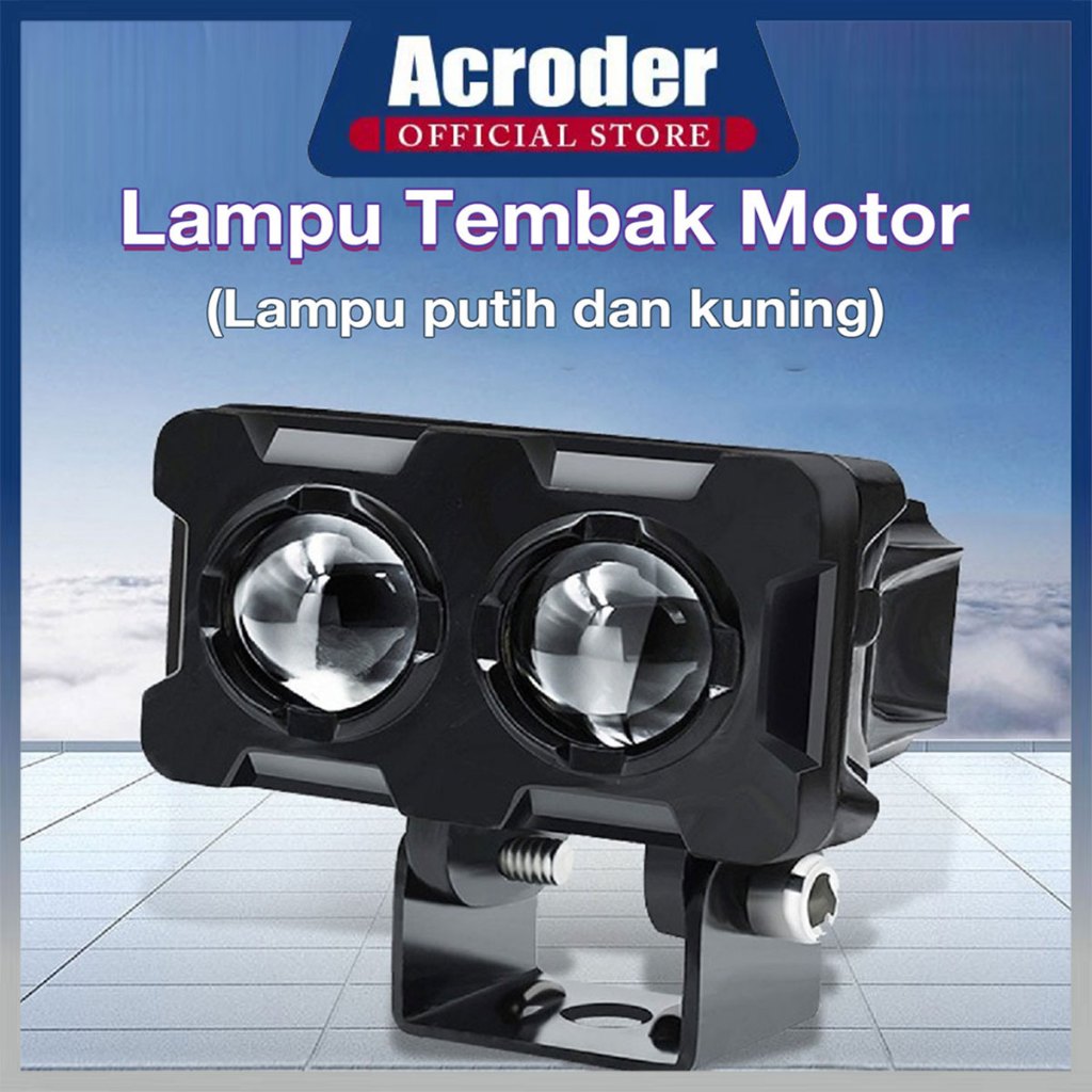 Acroder Lampu Tembak Sorot Motor LED Laser Gun 2 Mata Putih Kuning 2 Warna Super Terang