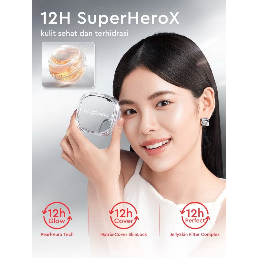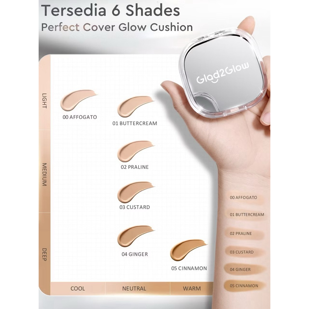 Glad2Glow Perfect Cover Glow Cushion Foundation Waterproof Make Up Setting Concealer BB Cream - Brightening dengan High Coverage Tahan 12 Jam & Tekstur Ringan, Wajah Glowing Minim Oksidasi