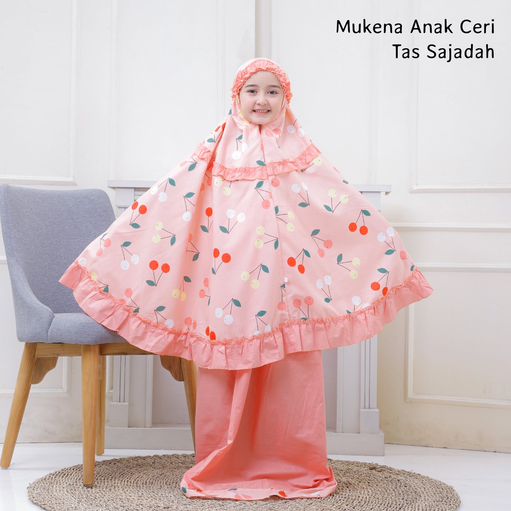 jumuna - Mukena Anak Tas sajadah Motif Ceri & Popie Pink