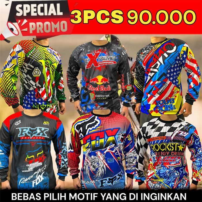 BELI 3 PCS 90.000 BAJU MOTOR CROSS JERSEY MOTOR TRAIL KAOS KLX SPORT - 3PCS EXTREME L