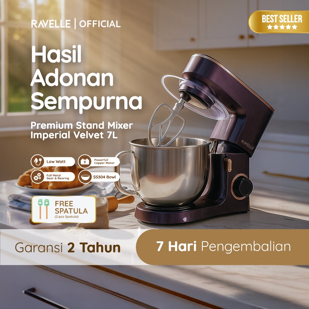 RAVELLE Premium Stand Mixer 7L Imperial Electric Mixer - Pengaduk Adonan Roti dan Kue