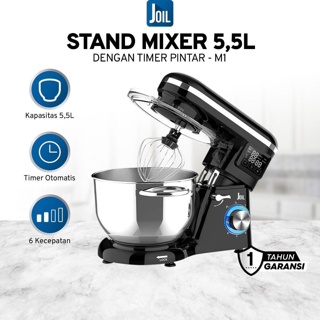 Joil Stand Mixer 5.5L Timer Off 6-Speed Stainless Steel M1