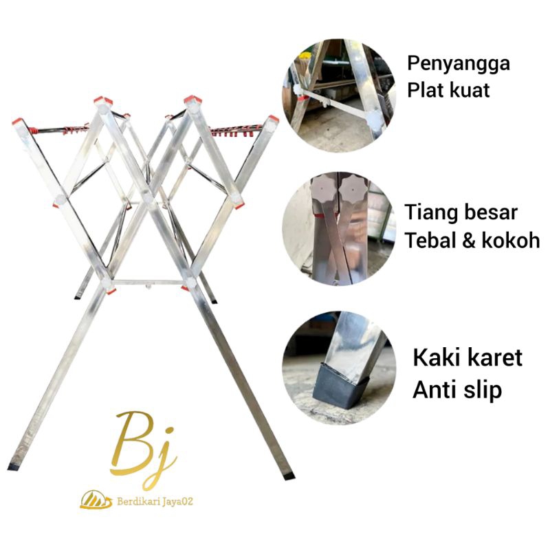 Jemuran Stainless Steel Jumbo 180 Cm Jemuran Pakaian Multifungsi Kuat Kokoh Anti Karat