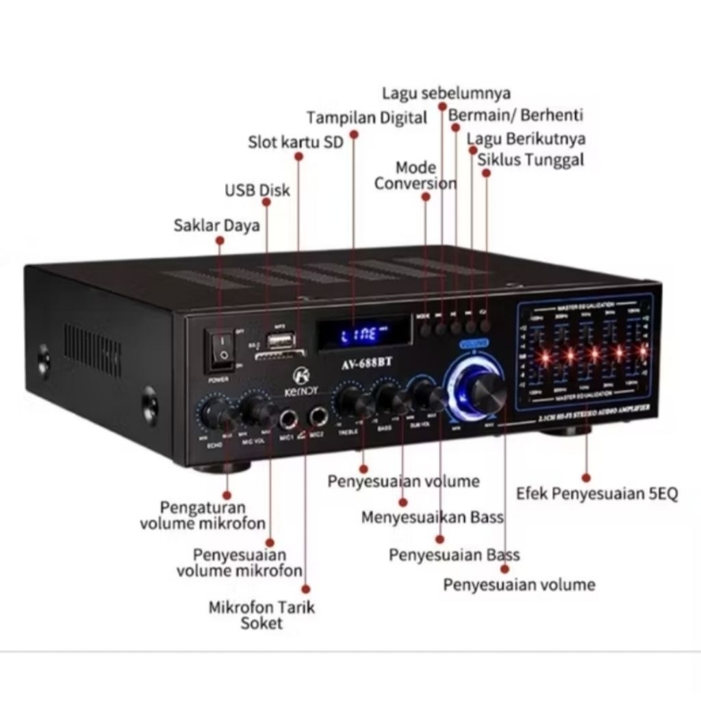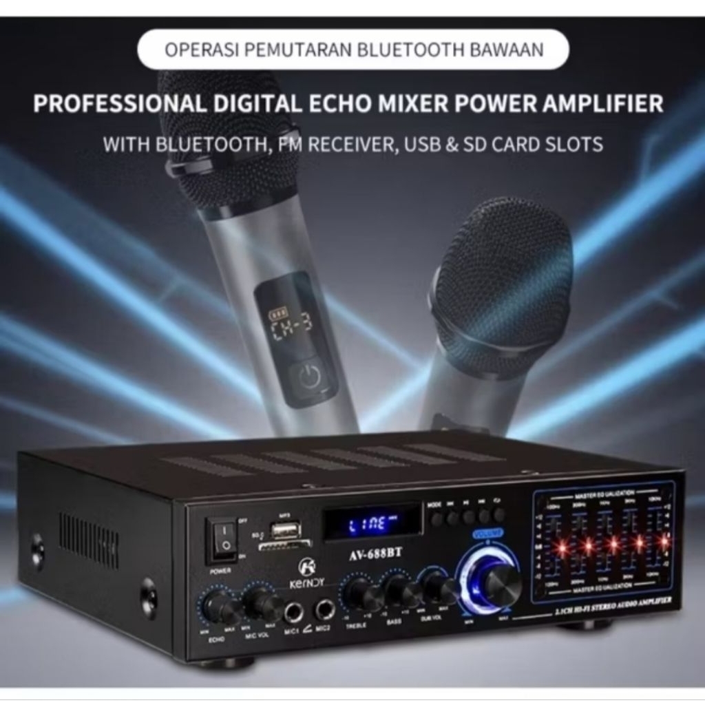 AV 688BT Amplifier Kerndy Bluetooth 5.3 Audio EQ Channel 2.1 Full Bass SUBWOOFER Amplifier Karaoke Home Theater AV-688BT