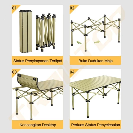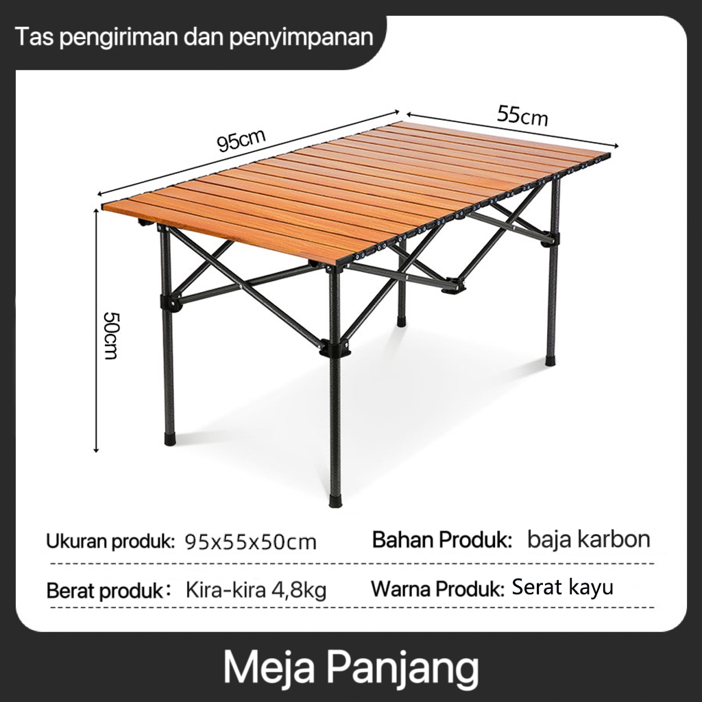 Meja Lipat Outdoor Portable Baja Karbon Ringan Tahan Beban 200kg Cocok untuk Camping Piknik