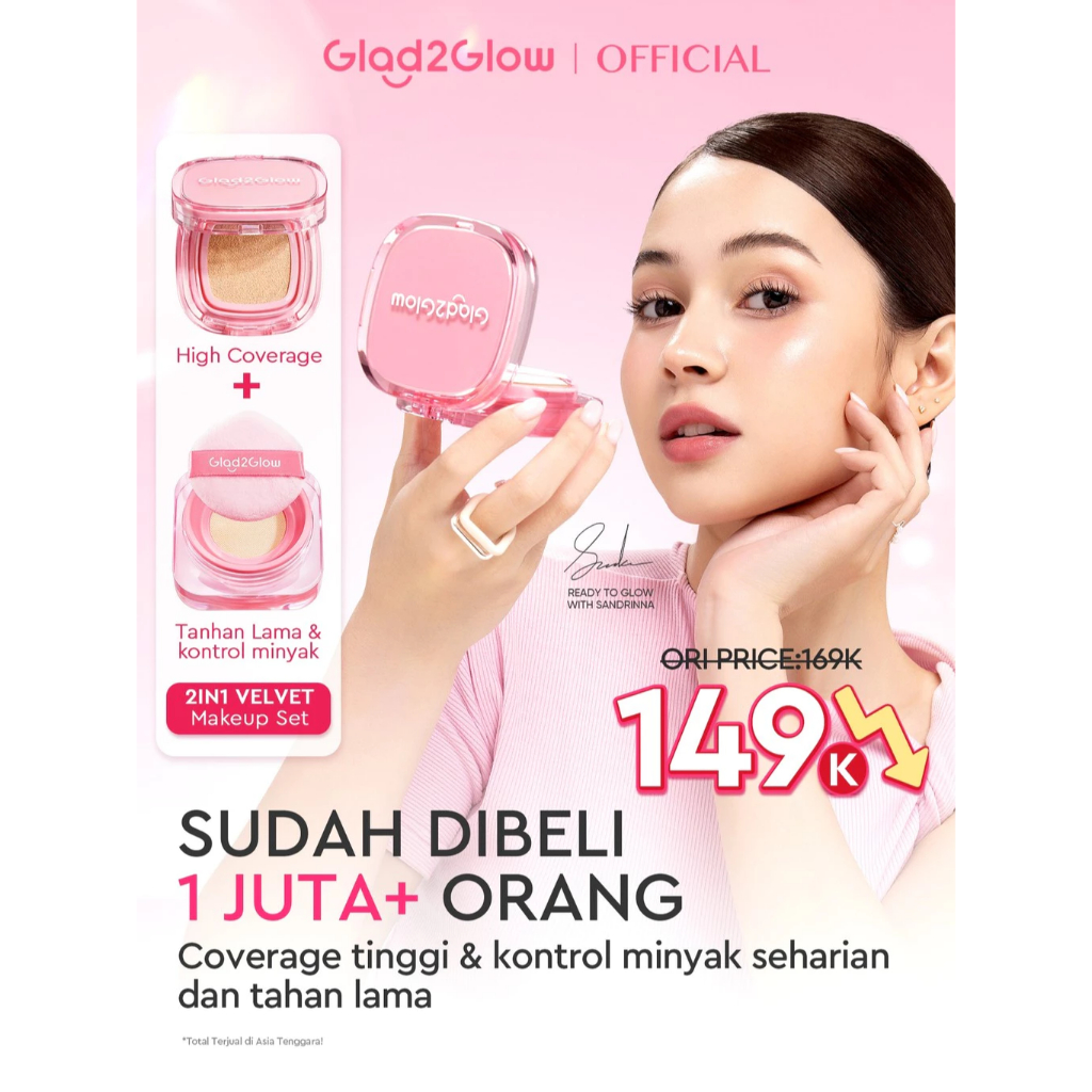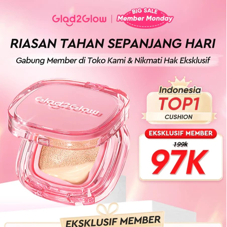 Glad2Glow Perfect Cover Cushion Foundation Waterproof Make Up Setting Concealer BB Cream Tahan Lama