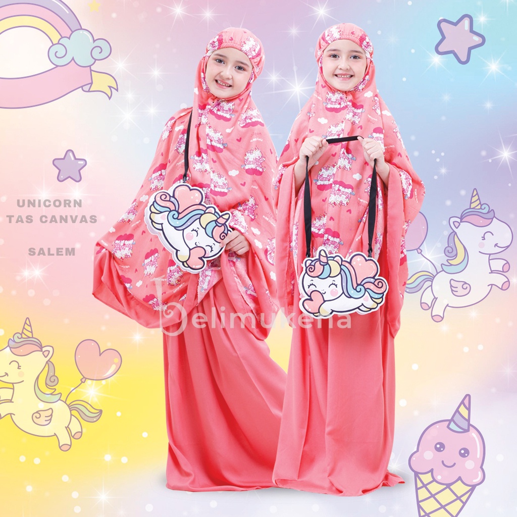 BELIMUKENA PREMIUM - Mukena Anak Unicorn ( Tas Canvas )