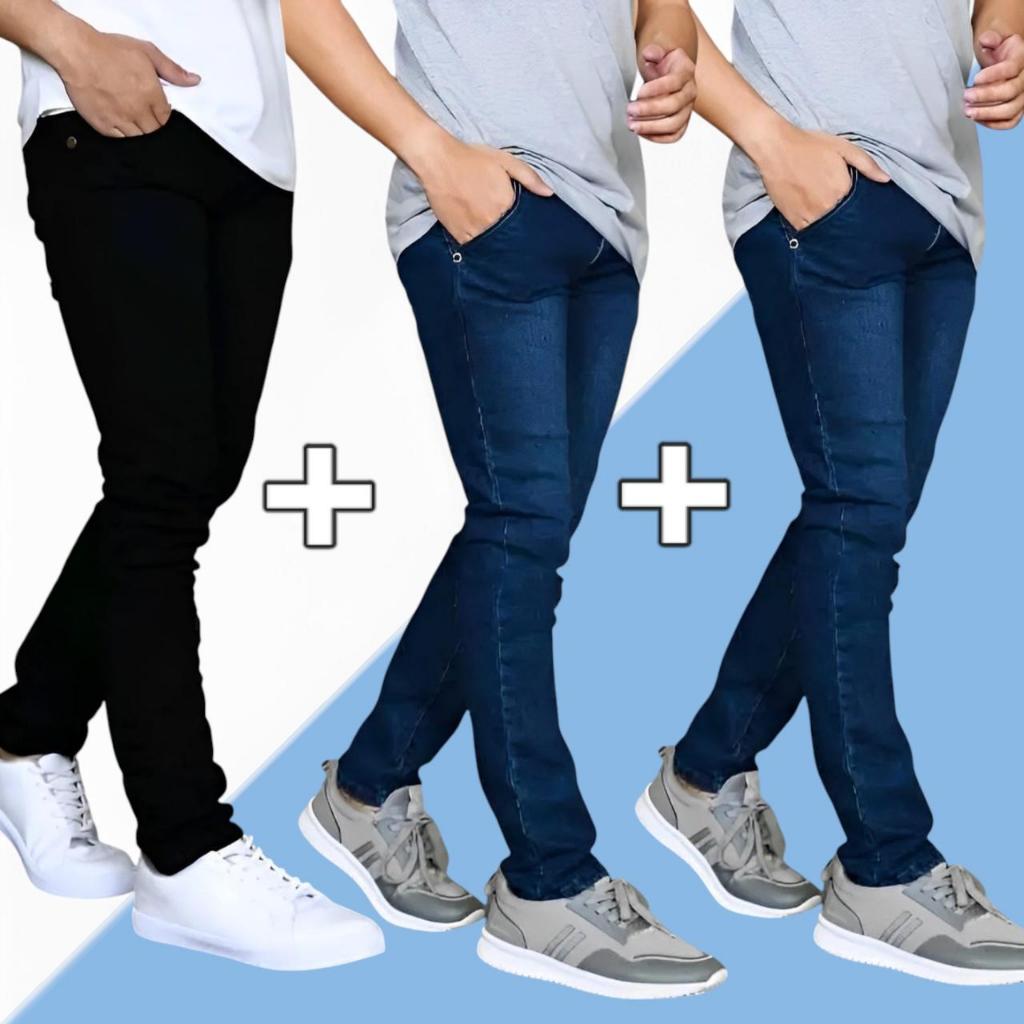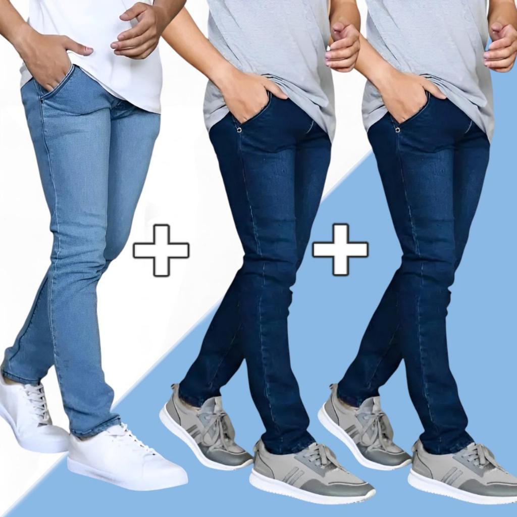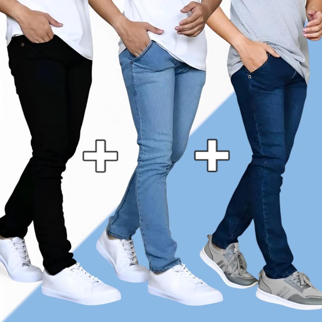 (PAKET HEMAT) Beli 2 Gratis 1 Pcs / Bisa / Bayar Di Tempat / Celana Jeans Pria Slim Fit / Celana Jin Cowok Pensil / Celana Jeans Panjang Pria / Celana Panjang Laki-laki / Bahan Melar