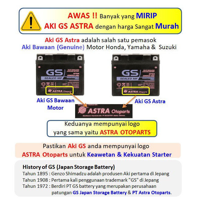 Aki Motor GS ASTRA MF GM5Z-3B Supra Vega Mio Smash Shogun dll