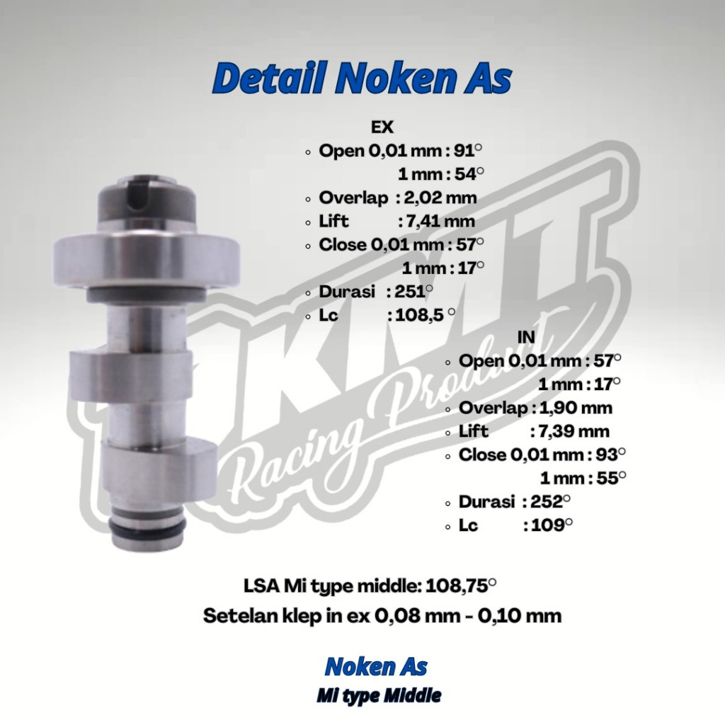 NOKEN AS RACING CAM YAMAHA MIO SPORTY VEGA ZR HARIAN STANDART TOURING RRA PNP KODE 7 DKMT RACING