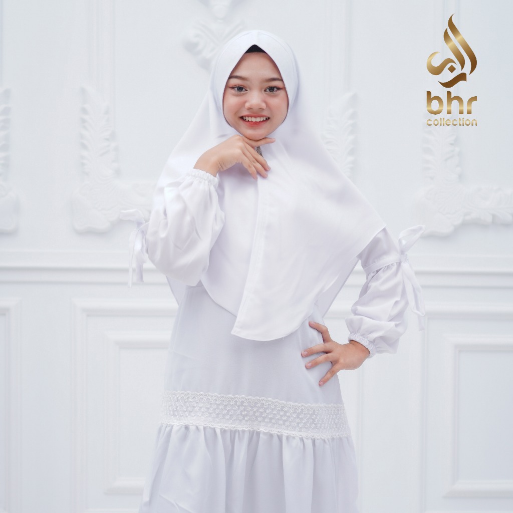 BHR collection Stelan Gamis Anak Manasik Warna Putih Variasi Renda Besar Usia 4 Tahun sampai 14 Tahun