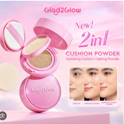 Glad2Glow 2in1 Perfect Pair Cushion Powder Foundation Waterproof Make Up Setting BB Cream Tahan Tahan 12Jam I 10gr