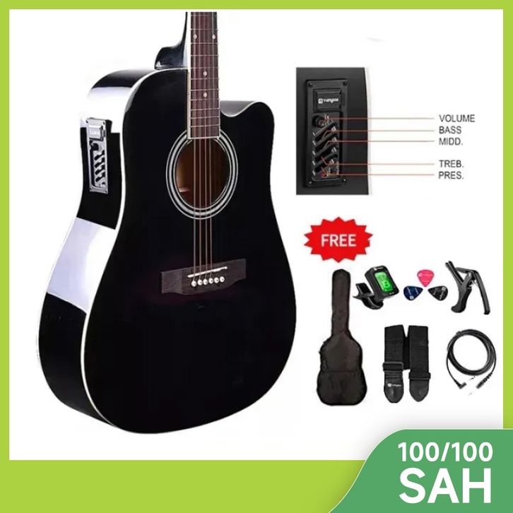 PLAYOU Low Action Gitar Akustik Elektrik 6 Senar Gitar Akustik Elektrik 41 inci Dengan Pickup 4EQ Dengan Tali Pengikat
