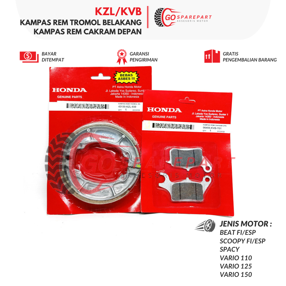 (HONDA) KZL/KVB PAKET KAMPAS REM BEAT FI DEPAN+BELAKANG / SCOOPY FI/ESP / SPACY / VARIO 110 / VARIO 125 / VARIO 150
