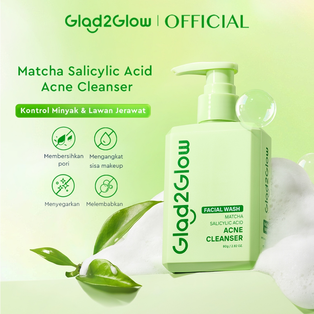 [New]Glad2Glow Matcha Salicylic Acid Acne Cleanser facial wash&Anti Jerawat Kontrol Minyak Face Wash Oily Acne Prone Ski