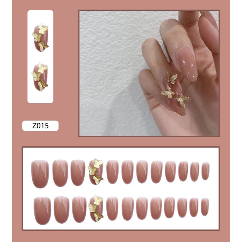 Isi 24 Pcs Kuku Palsu 3D t Motif Panjang Pendek Fake Nail Art Free Dengan Lem