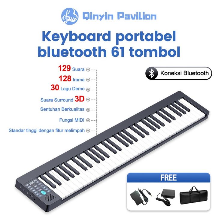 Qinyin_Pavilion - piano profesional 61 tombol, piano listrik pintar, keyboard portabel bluetooth 61 tombol, keyboard pi