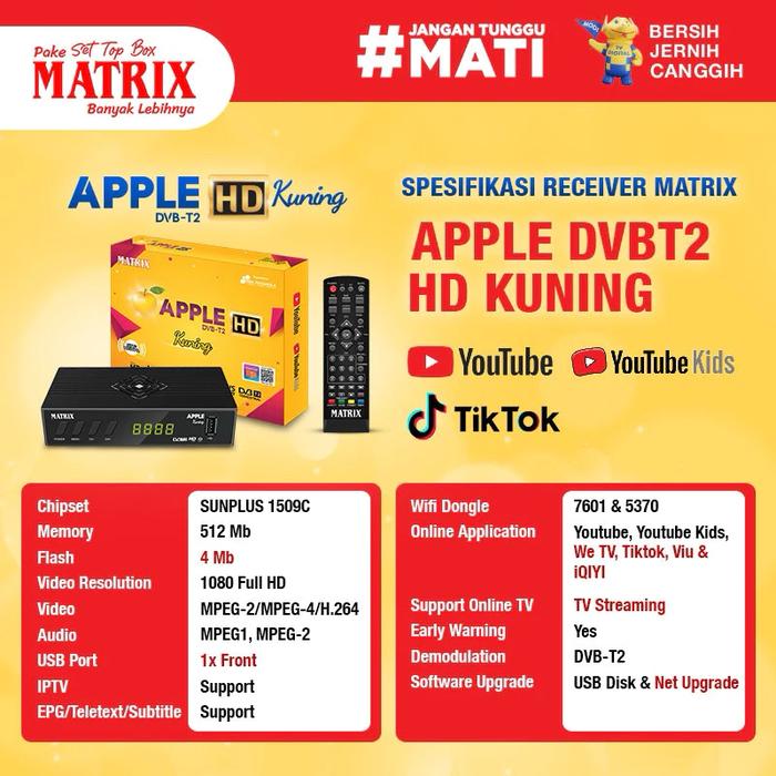 PROMO [c06] SET TOP BOX STB RECEIVER TV DIGITAL DVBT2 BURGER APPLE KUNING | MATRIX VITARA - BURGER