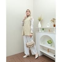LAYALI Blouse Silk Series -Pakaian Wanita Terbaru by myHMi - Cream Olive S