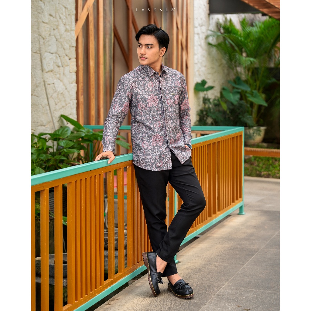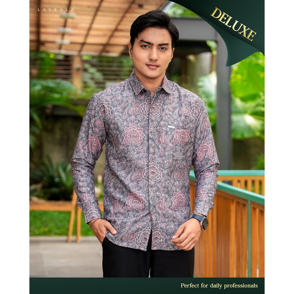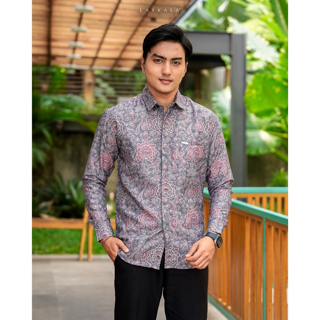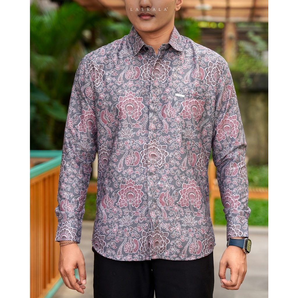 Laskala Batik Premium Tomohon Tosca Kemeja Batik Pria Slimfit Lengan Panjang