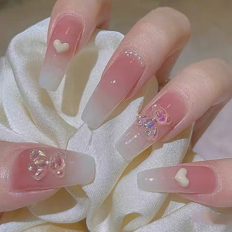 Kuku Palsu 3D Dome Nail Art Tangan Pengantin 24 Pcs