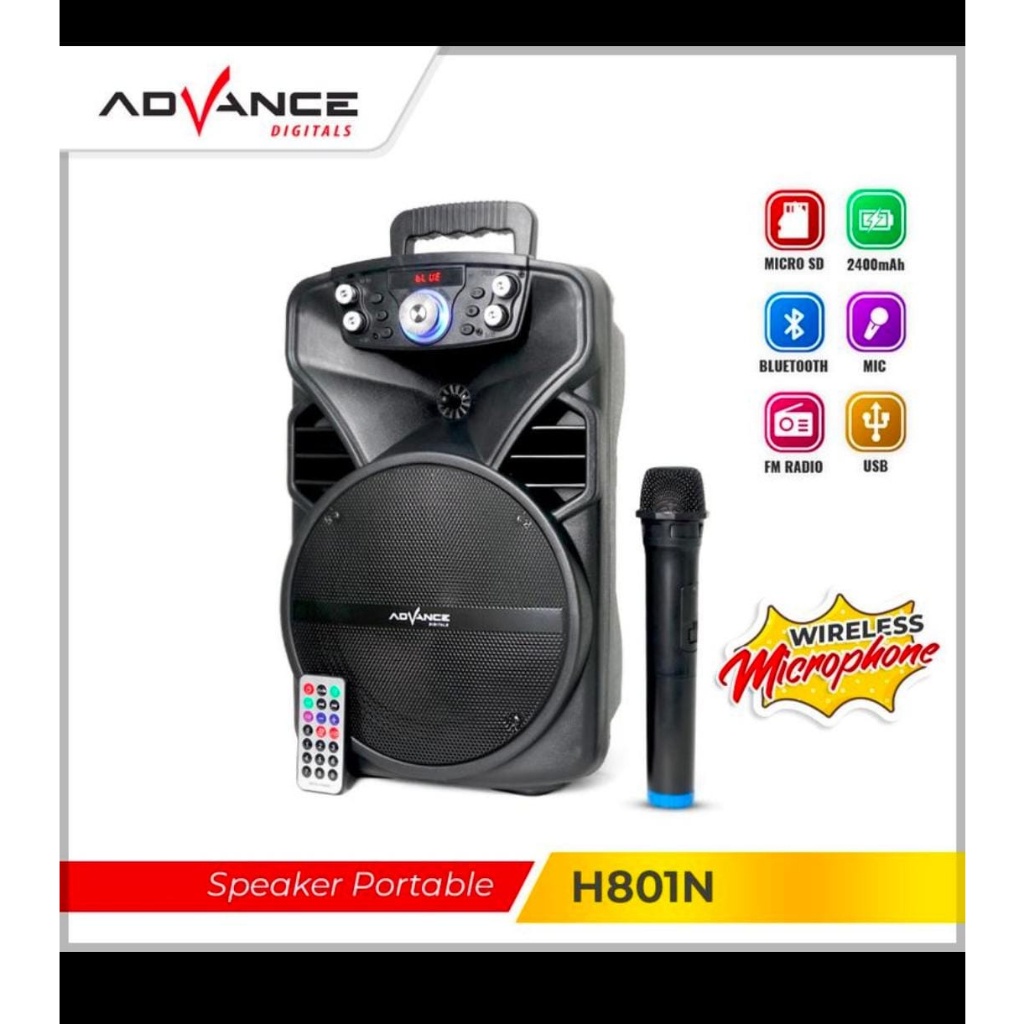Advance H-801N Speaker Bluetooth Portable 8 Inch Free 1 Mic Karaoke Wireless Garansi Resmi 12 Bulan