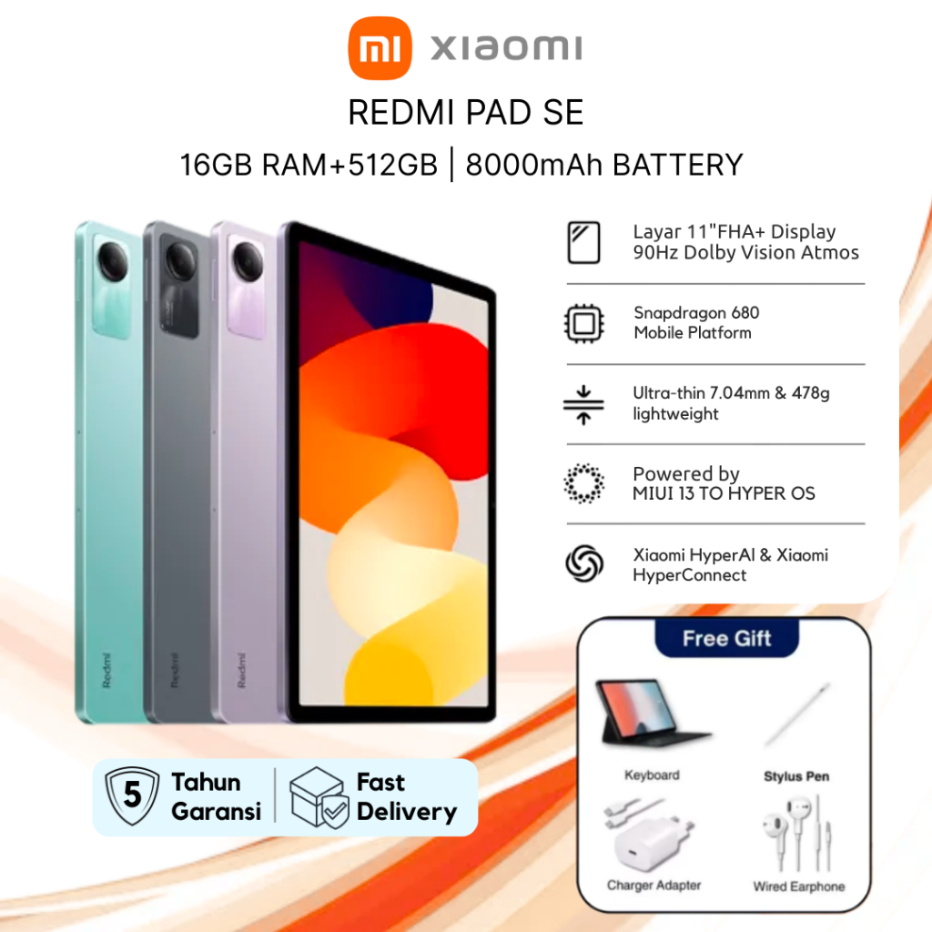 [Mall] TABLET PC WINDOWS 10 MURAHI XIAOMI REDMI PAD SE (16GB+512GB) SNAPDRAGON 680 LAYAR 11 FHD+ 8000MAH GARANSI RESMI