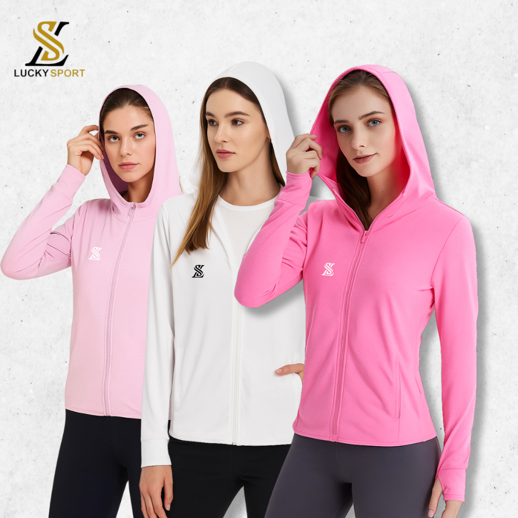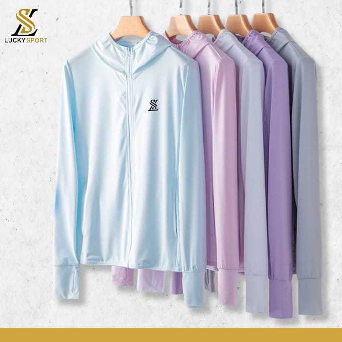 Jaket mesh hoodie UV protection olahraga JPS Pria Wanita AIRism Jaket Mesh Hoodie UV Protection Dryfit Cepat Kering Luckysport