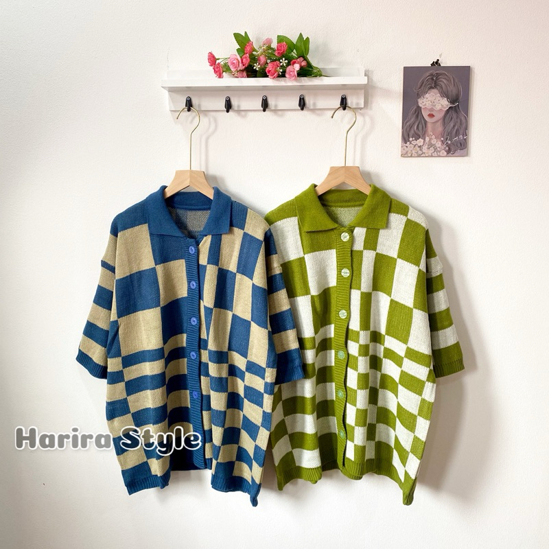 Raisa Cardigan Motif Kotak Full Kancing from Harira Style
