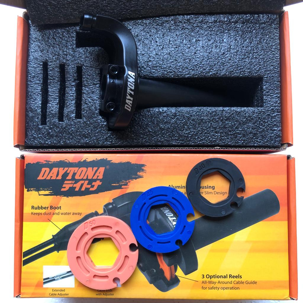 GAS SPONTAN CNC DAYTONA JAPAN THROTTLE KIT 2 KABEL PANJANG + 3 REELS WARNA HITAM UNIVERSAL SEMUA MOTOR