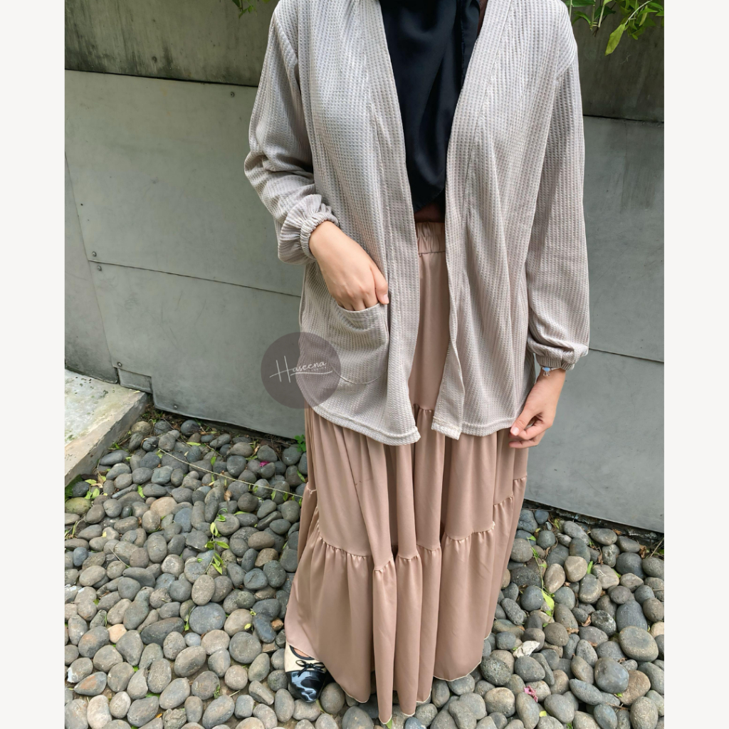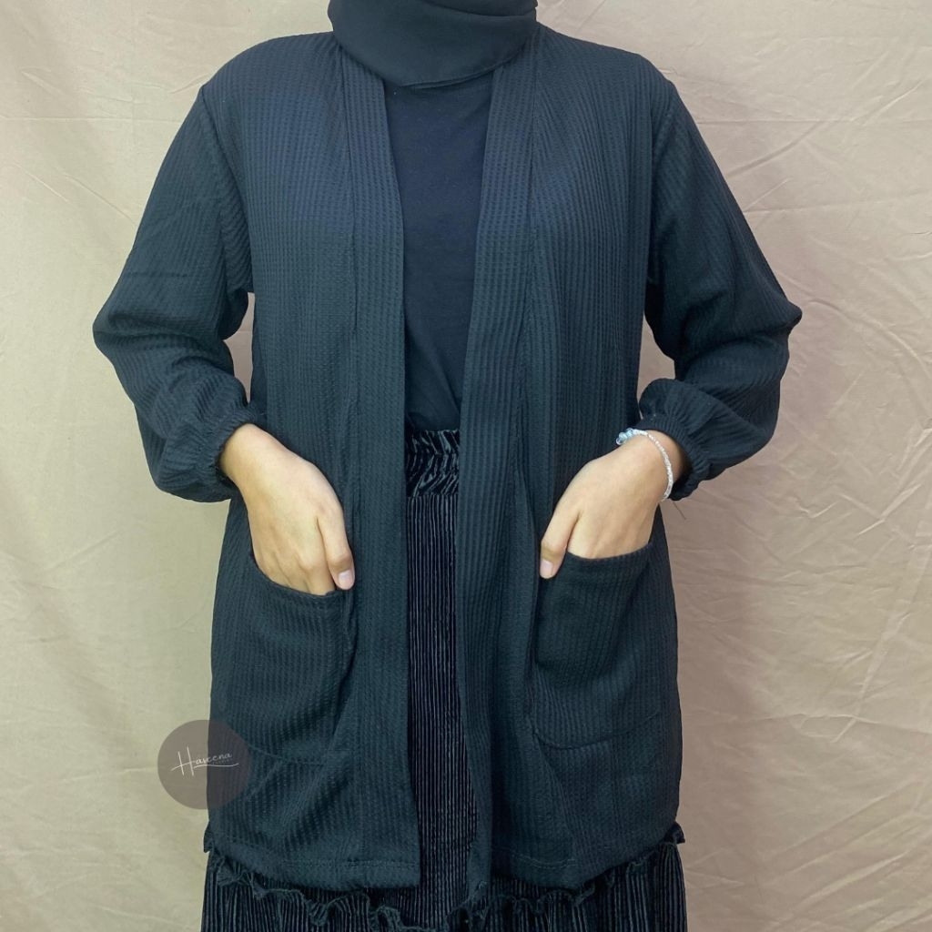 Haseena Cardigan Polos Ayra Outer Wafle Saku Lengan Balon Oversize Jumbo