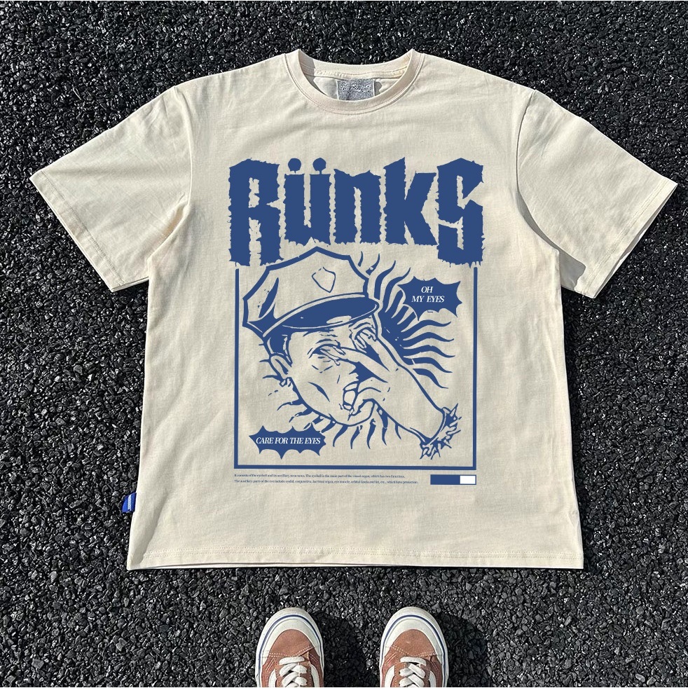 Kaos Oversize Pria dan Wanita Kaos American Retro Style T-Shirt Oversize Oh My Eyes Street Style 100%cotton Top 7.1