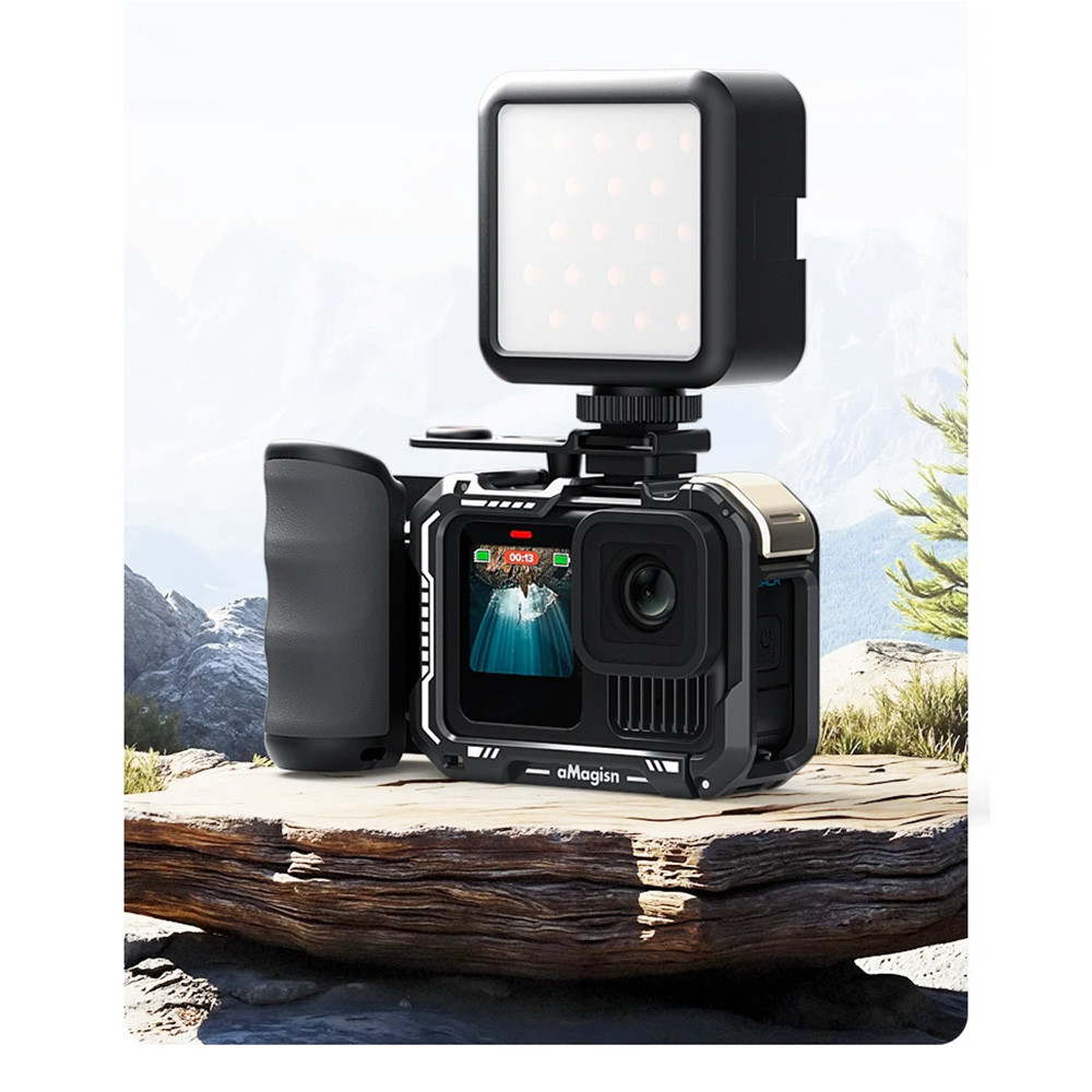 aMagisn Handle Grip for Insta360 ACE PRO 1 2, DJI Action 5 Pro 4 3, Gopro Street Photography untuk Universal Action Camera Yang Menggunakan Rabbit Cage