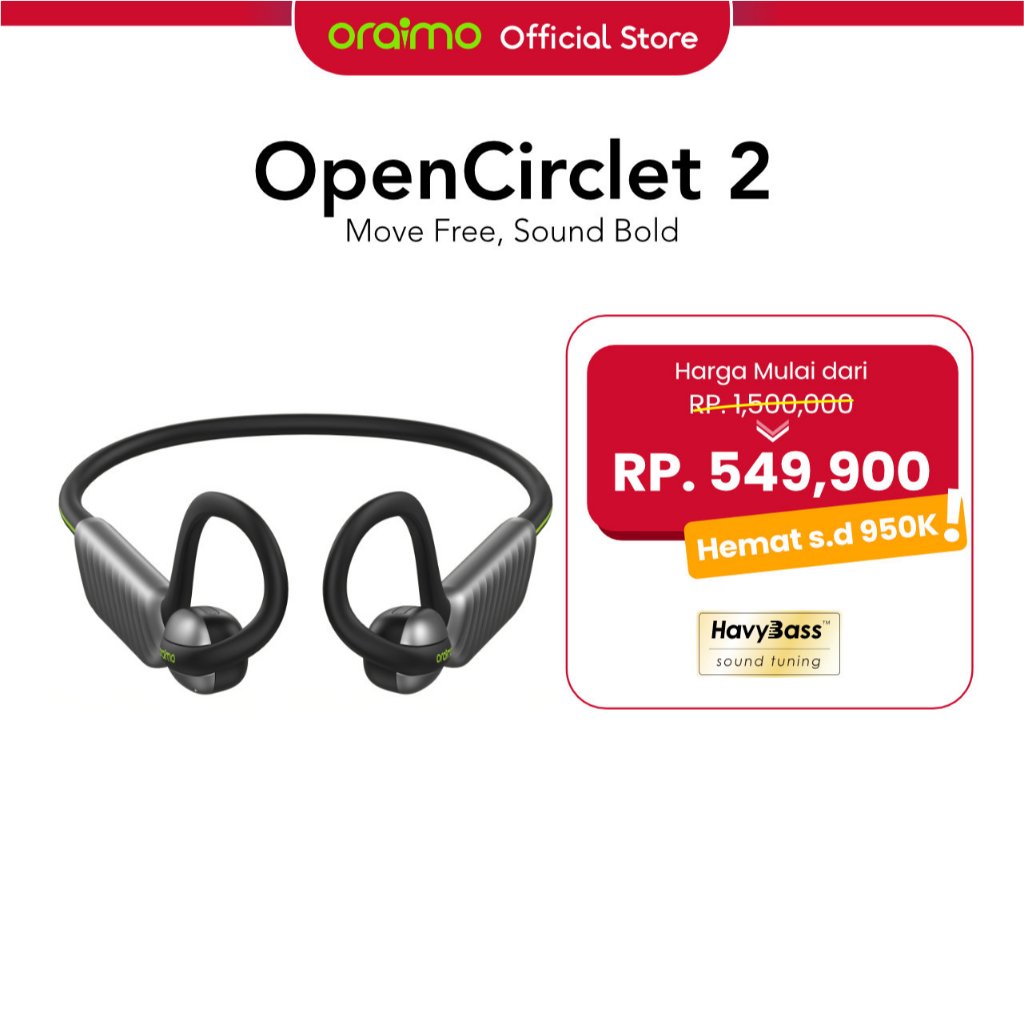 oraimo Open Ear Headset Earphone Telinga Terbuka OPN-672 OpenCirclet 2 Bluetooth V5.4 Bass Nirkabel Low Latency Gaming Mode IPX5 Tahan Air Hitam Earphone Headset Kabel Mic Bass Stereo Waterproof