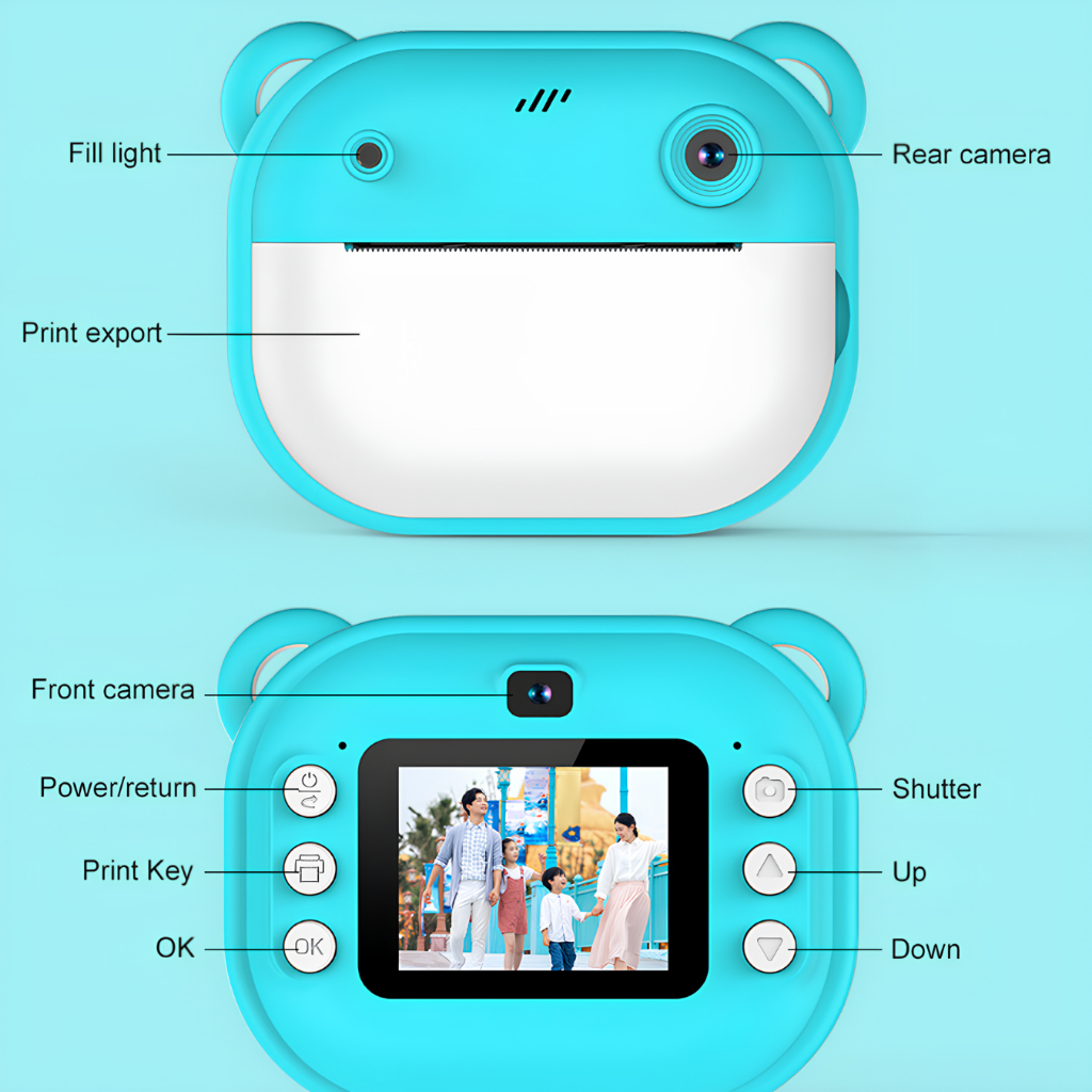 UPLU Kamera Mini Langsung Cetak Foto 48Mp Dual Lensa Kamera Anak Digicam Digital Camera Instan Print