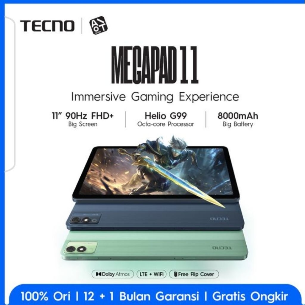 Tecno Megapad 11 8+8RAM/256GB Tablet 11inch 8000mAh Dolby Surround Cocok Buat Gaming