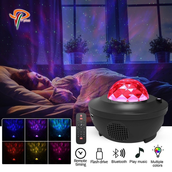 lampu proyektor lampu tidur aesthetic Aurora Speaker Langit Malam Bulan Bintang 2IN1/ lampu ruangan live / Starry proyek