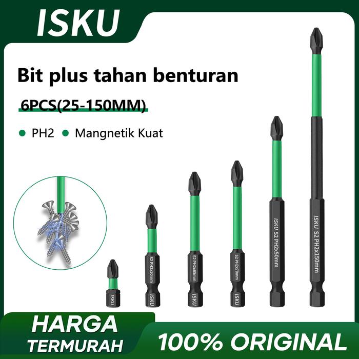 ISKU MATA OBENG SET BOLAK BALIK 6PCS/MATA OBENG ANGIN PLUS MINUS PH2 DOUBLE SCREWDRIVER BITS - 6 PCS