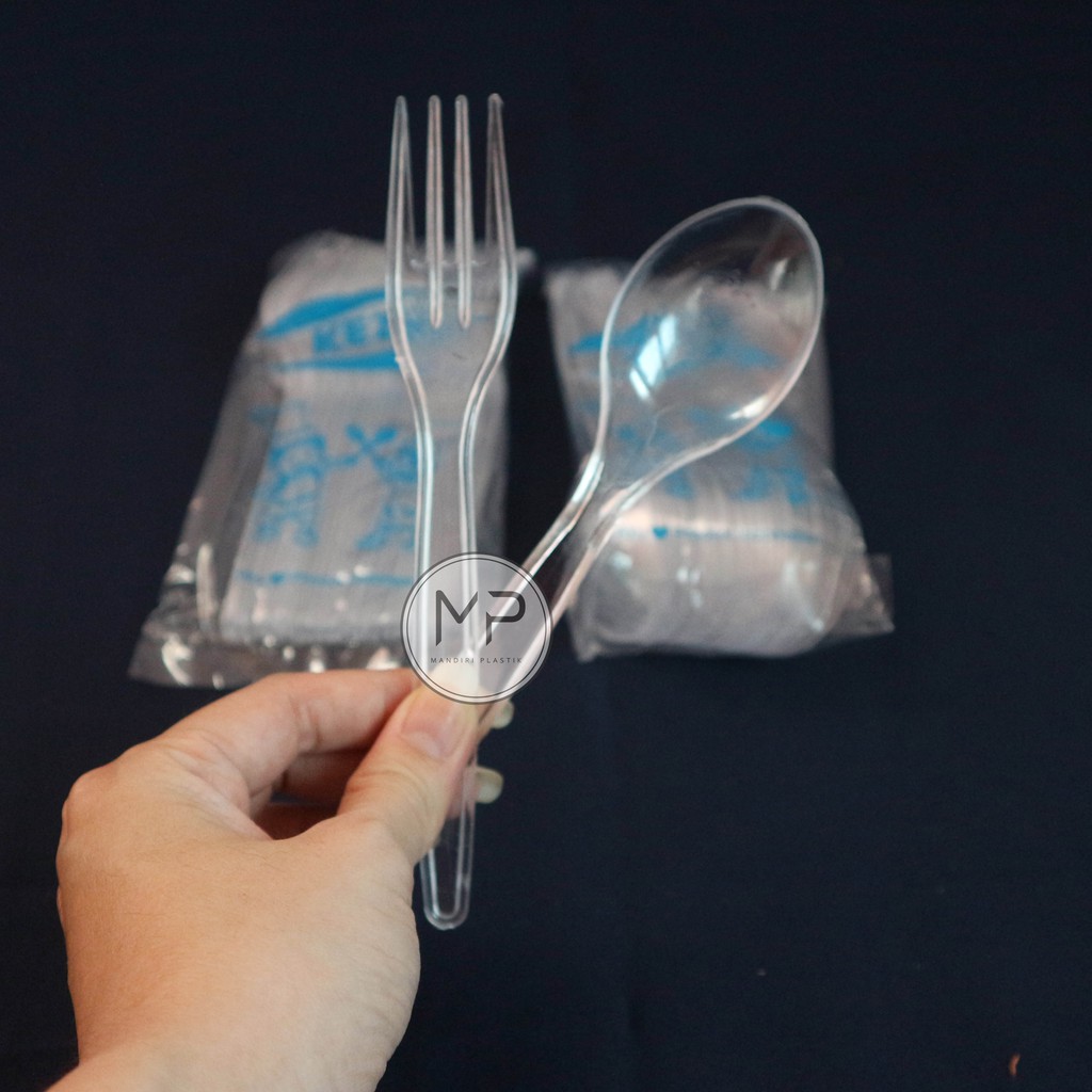 Garpu Plastik Makan Plastik Bening TEBAL -100pcs