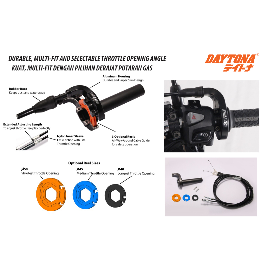 Gas Spontan Daytona New All Matic Dual Cable 1.8 Meter Nmax, PCX, Vario, Beat, Genio, Fazzio