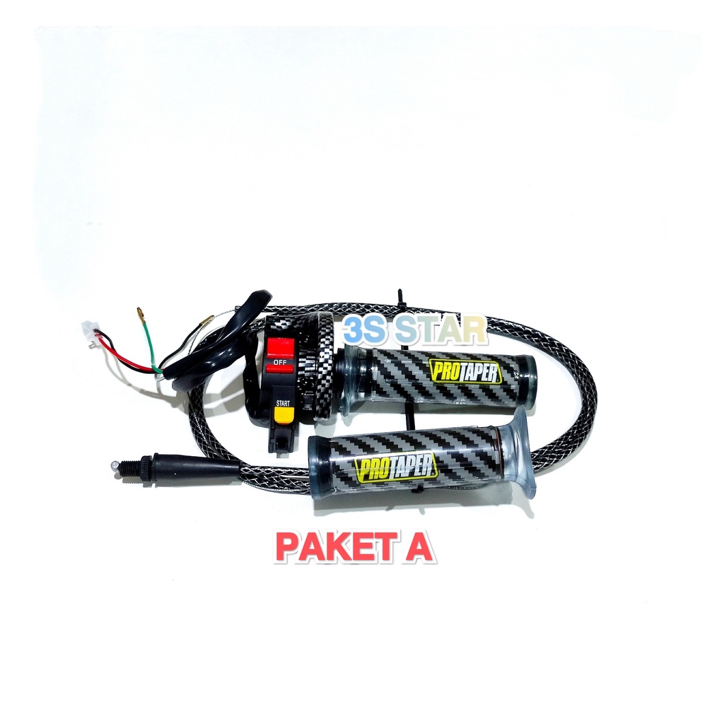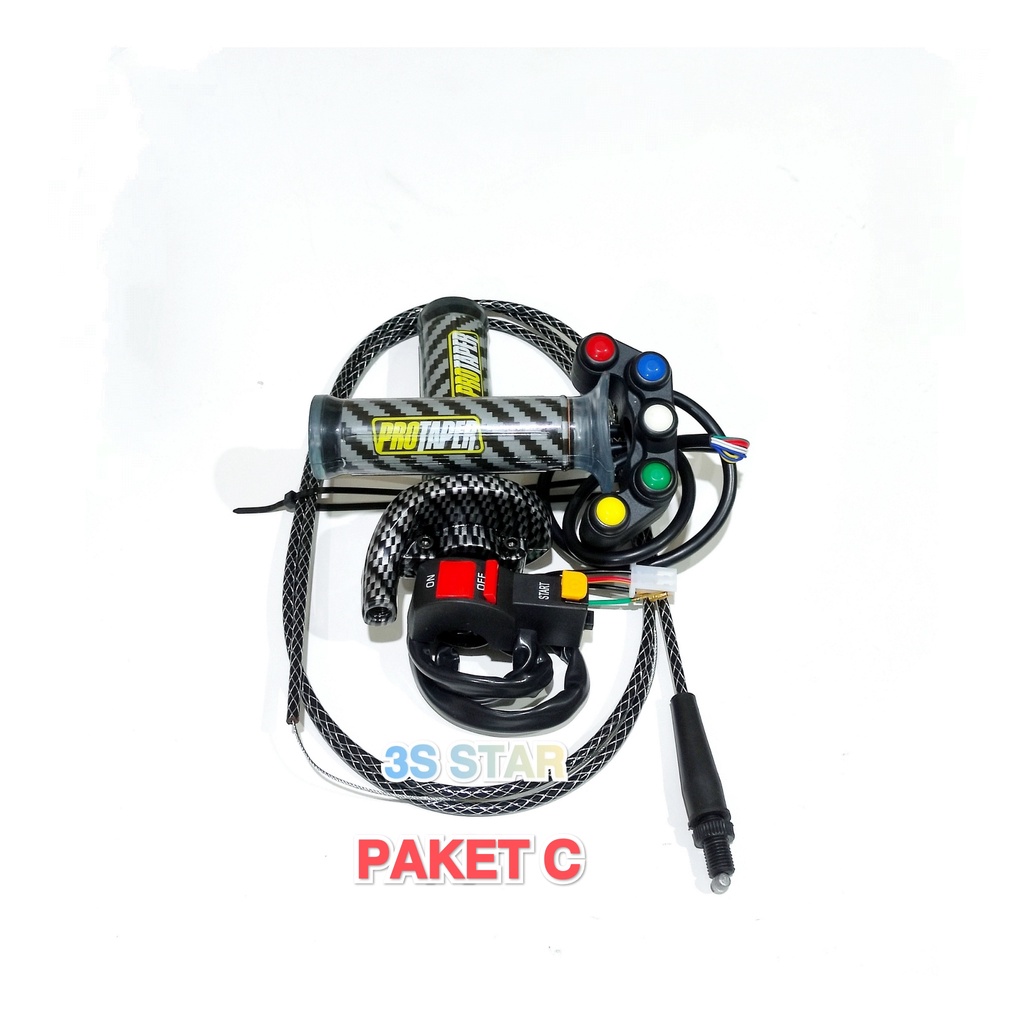 PAKET GAS SPONTAN DAYTONA KARBON PLUS SAKLAR + KABEL GAS SERAT KARBON 190CM DAN GRIP KARBON PROTAPER