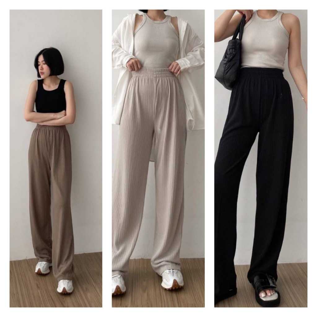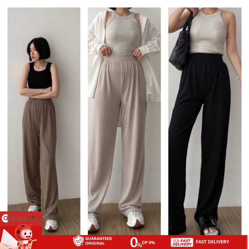 ZAURA PANTS Knit Full Karet Cullote Celana Kulot Wanita Terbaru Jumbo Jeans Highwaist Wanita Jumbo Crinkle Putih Bahan