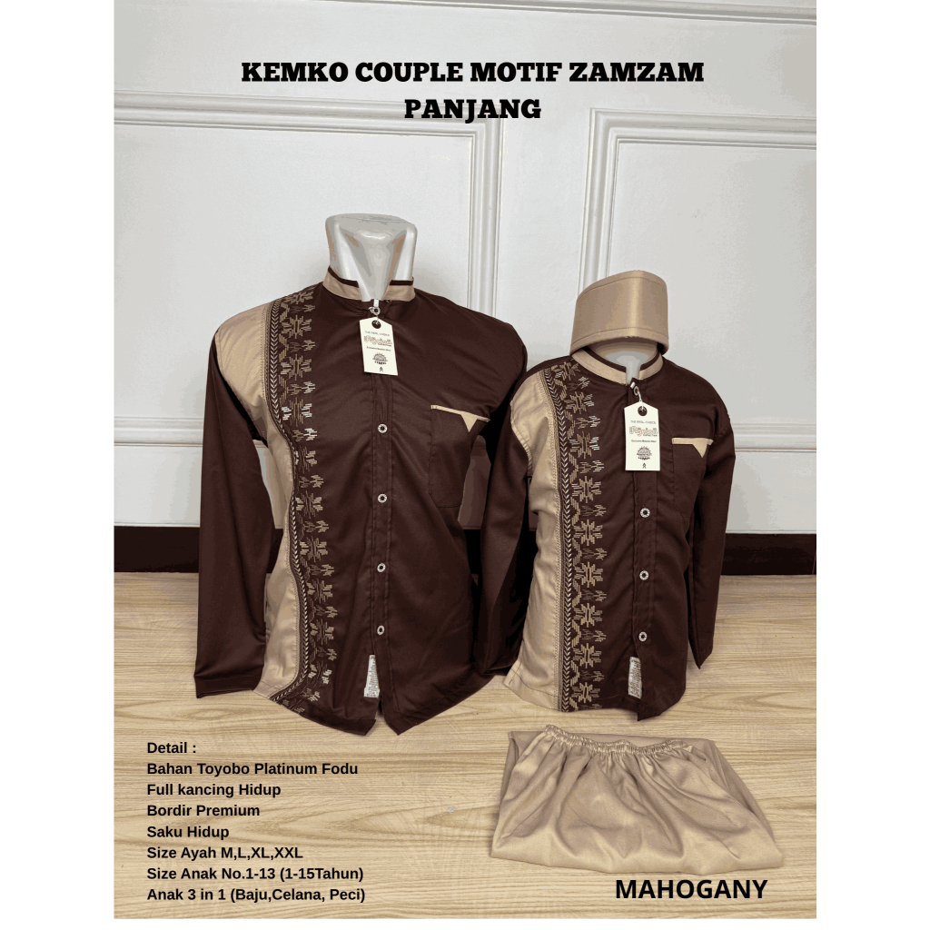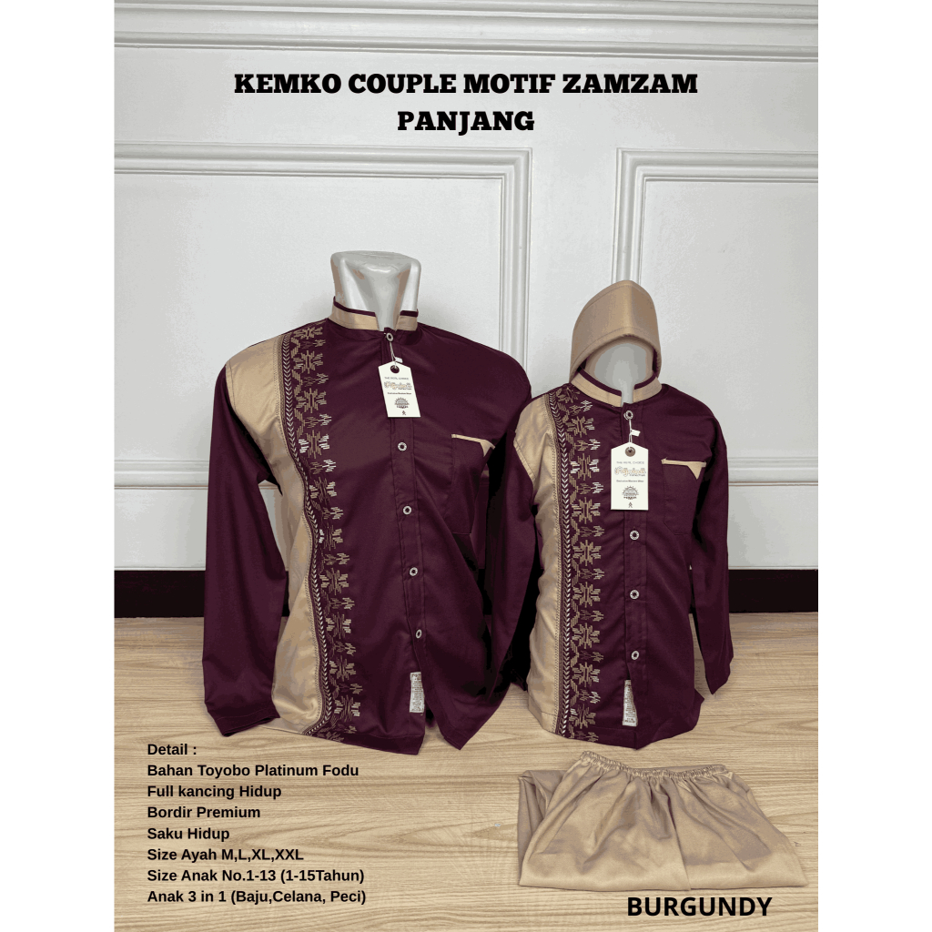 Baju koko Couple Ayah Anak Katun Sarimbit - Atasan Muslim Bordir Pria - Lebaran Baju Kembaran Murah