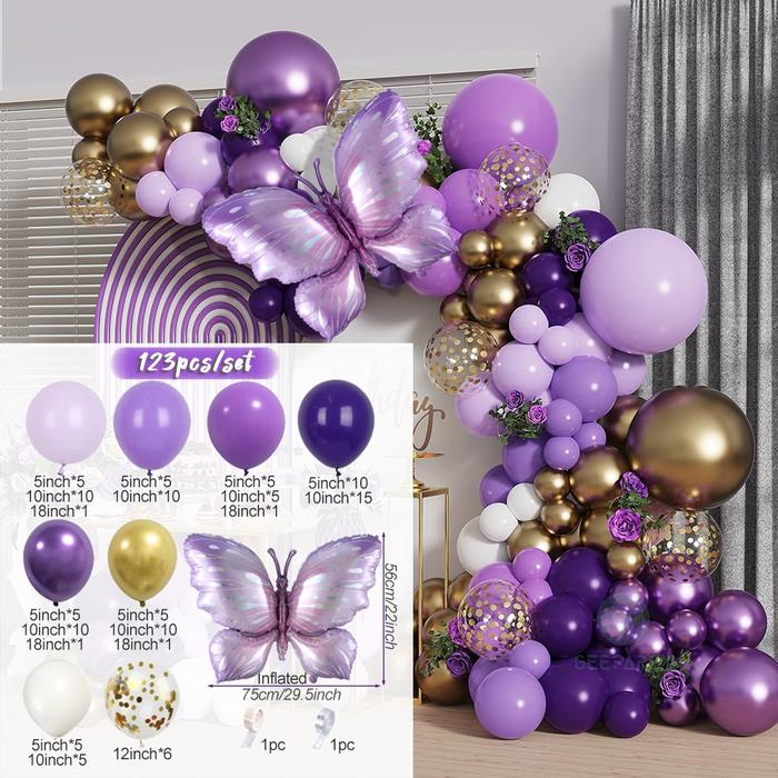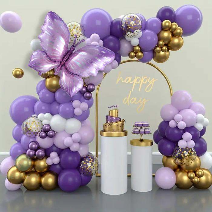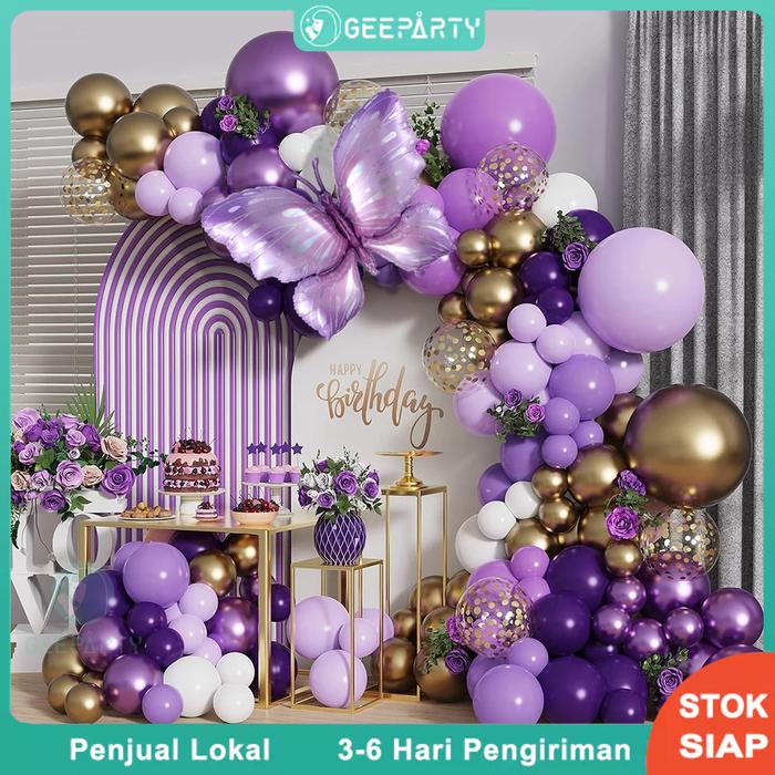 123 pcs Karangan Garland Balon Kupu-kupu Ungu Metalik Emas Untuk Dekorasi Ulang Tahun Pernikahan