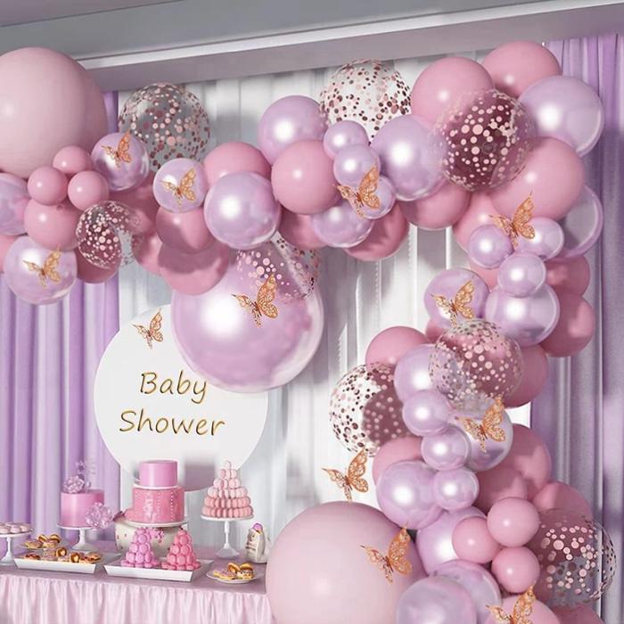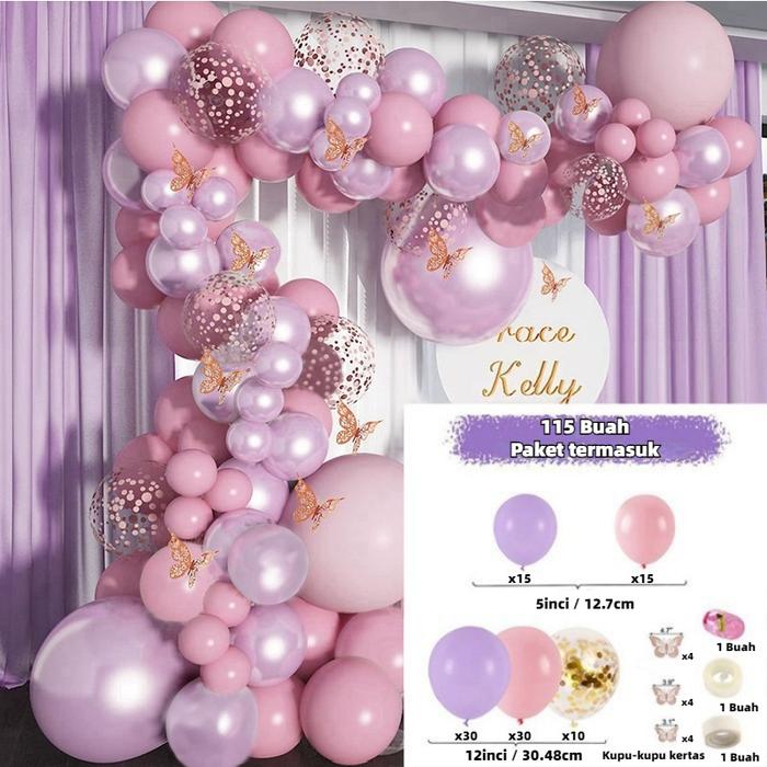 115 Pcs Balon Set Arch Ungu Pink Metalik Balon Garland Balon Rantai Lem Lateks Pesta Ulang Tahun - 115 Pcs