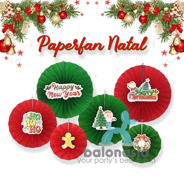 Dekorasi Pesta 6 pcs Paper Fan High Quality Natal Merah Hijau / Dirgahayu RI / Merah paperfan biru pink - Paperfan Natal